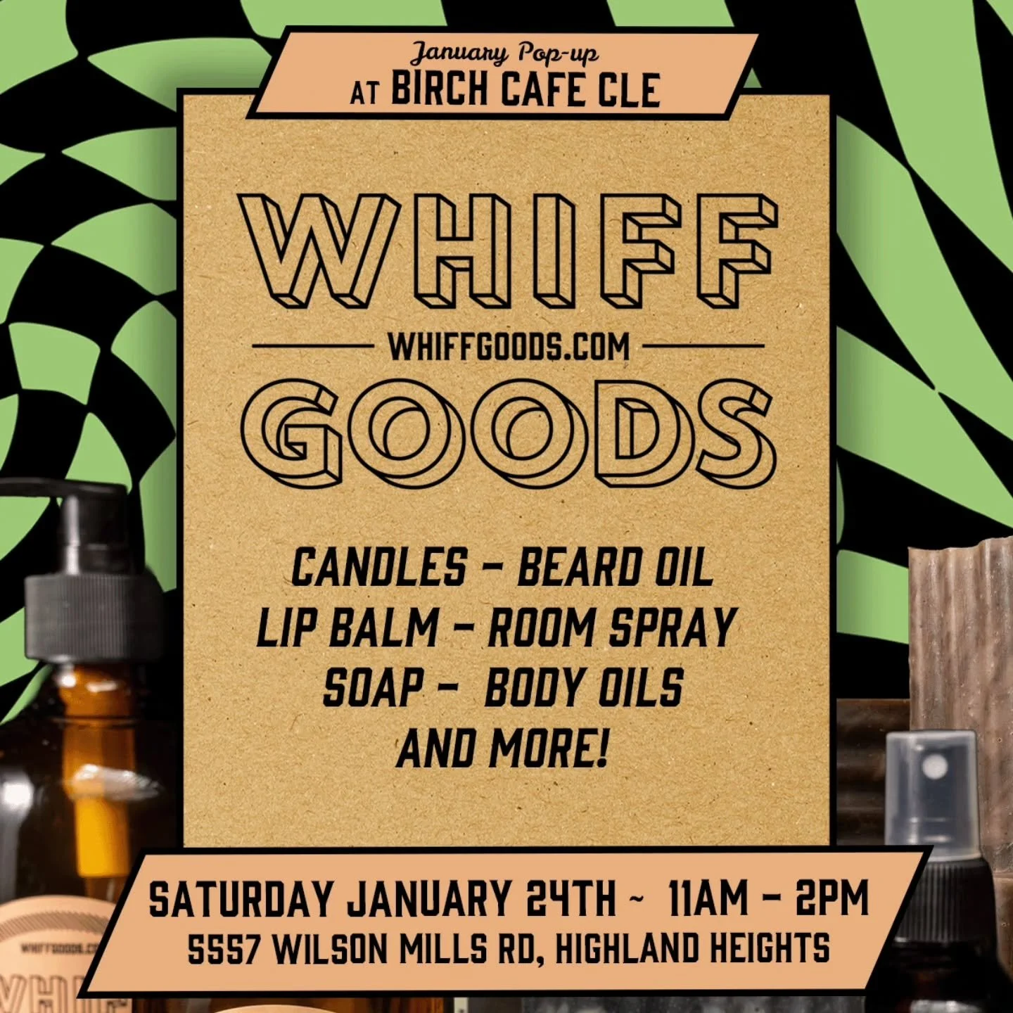 WHIFF does not have a brick and mortar location (yet!) so you can find available stock here or at an in-person artisan and maker markets scheduled in the Cleveland area throughout the year. Upcoming events will be posted on the WHIFF GOODS Instagram (@whiff_goods) or the Calendar Page here on WHIFFGOODS.COM